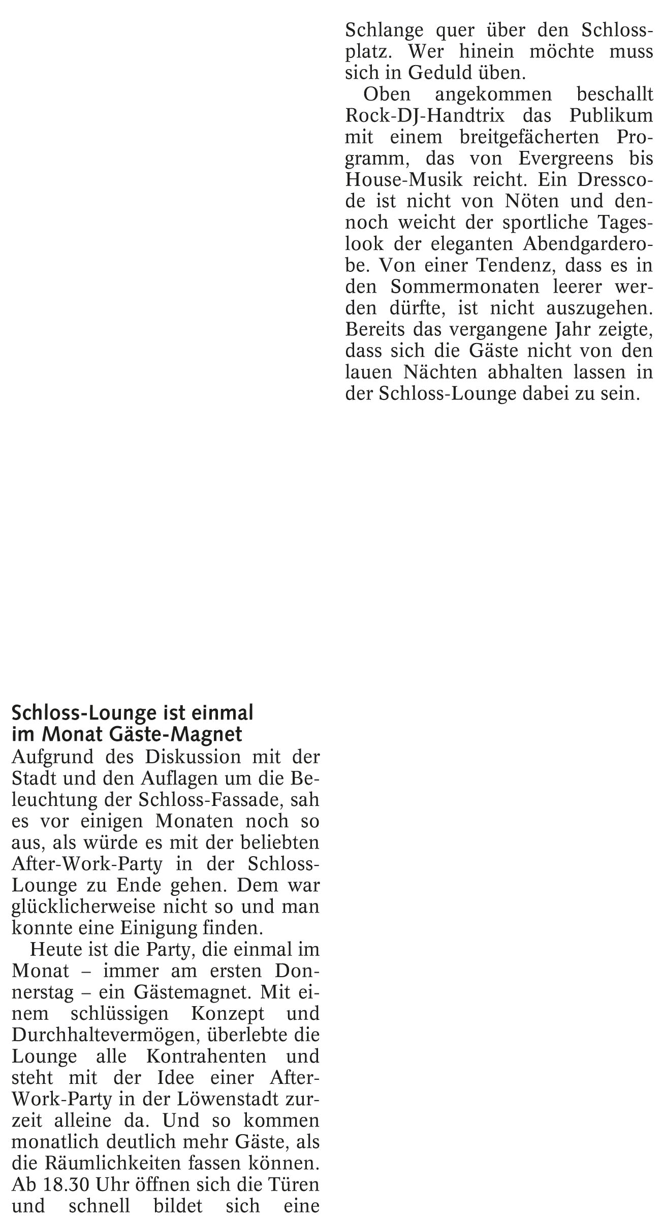 Schloss-Lounge ist einmal im Monat Gäste-Magnet