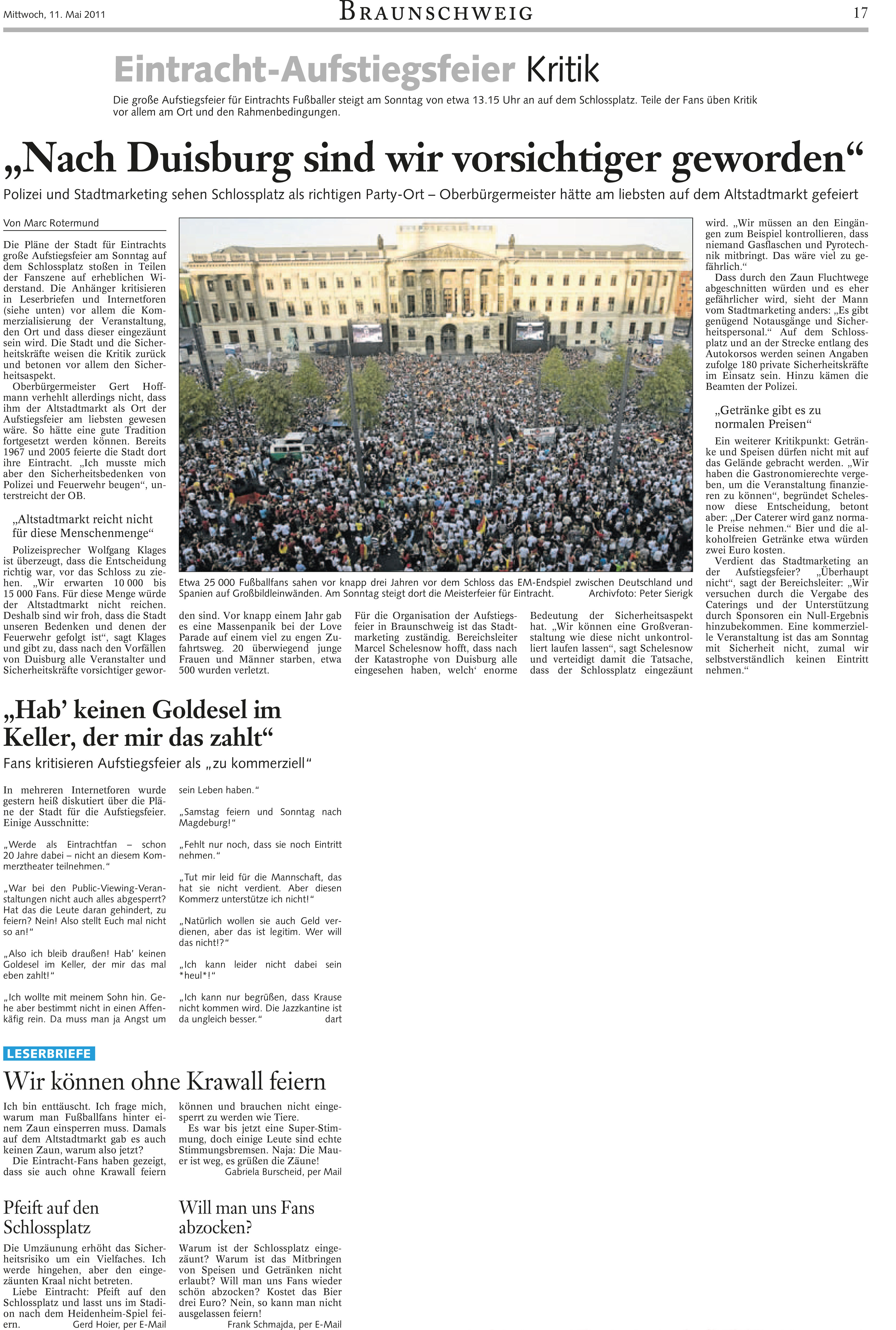 Nach Duisburg sind wir vorsichtiger geworden