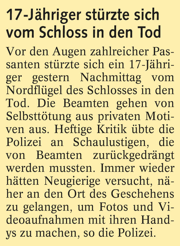 17-Jähriger stürzte sich vom Schloss in den Tod