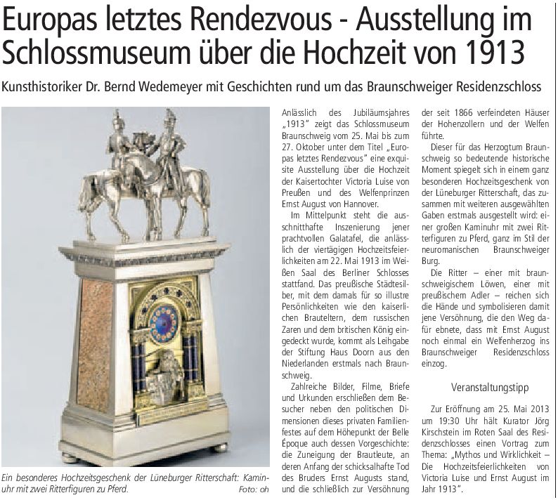 Europas letztes Rendevous – Ausstellung im Schlossmuseum über die Hochzeit von 1913 Bild vom 03. Mai 2013 Originaldatei herunterladen …