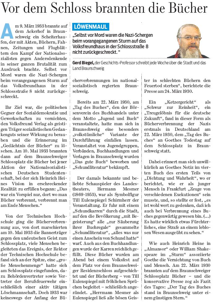 Vor dem Schloss brannten die Bücher