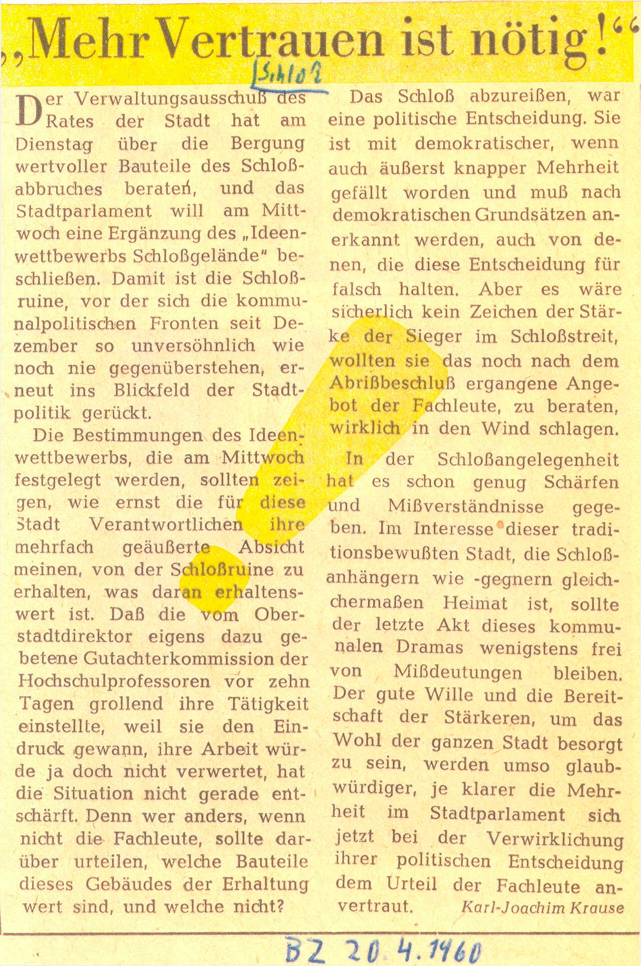 Redaktioneller Beitrag vom 20. Apr. 1960