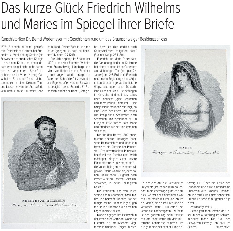 Das kurze Glück Friedrich Wilhelms und Maries im Spiegel ihrer Briefe Bild vom 03. Juli 2015 Originaldatei herunterladen …