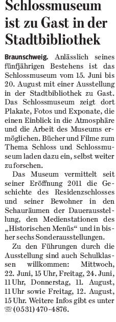 Schlossmuseum ist zu Gast in der Stadtbibliothek Redaktioneller Beitrag vom 15. Juni 2016 Originaldatei herunterladen …