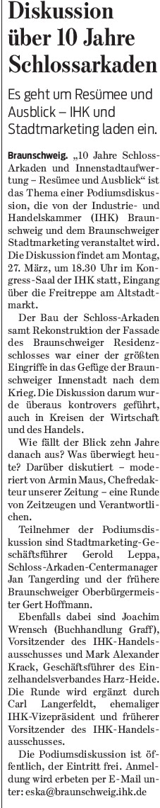Diskussion über 10 Jahre Schlossarkaden Redaktioneller Beitrag vom 22. März 2017 Originaldatei herunterladen …