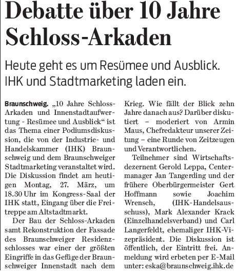Debatte über 10 Jahre Schloss-Arkaden Redaktioneller Beitrag vom 27. März 2017 Originaldatei herunterladen …