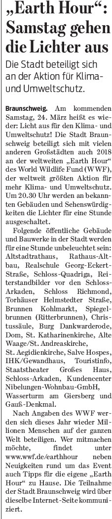 "Earth hour": Samstag gehen die Lichter aus