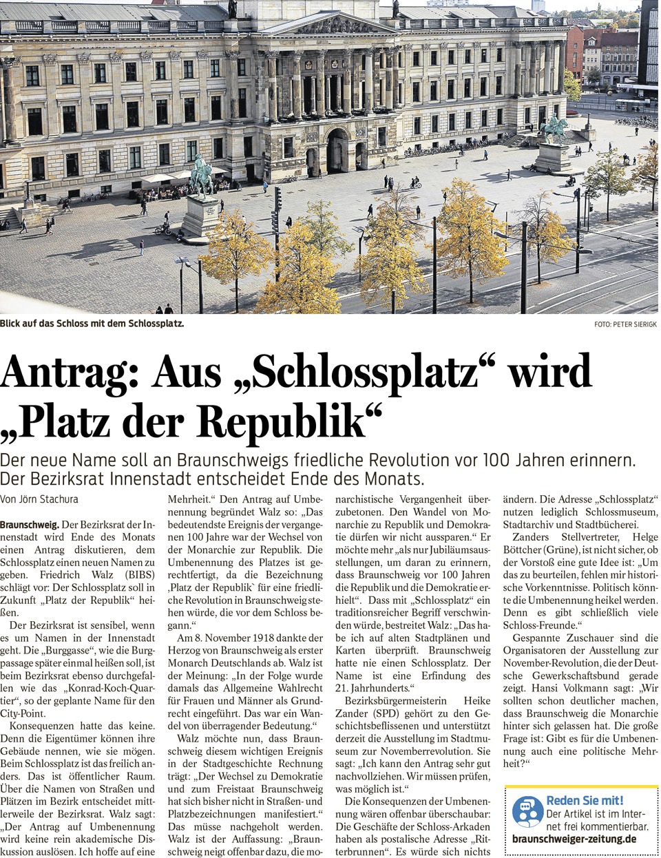 Antrag: Aus "Schlossplatz" wird "Platz der Republik"
