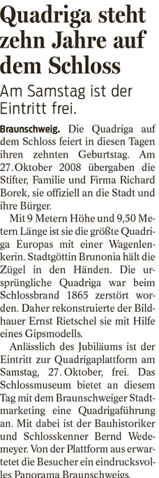 Quadriga steht zehn Jahre auf dem Schloss