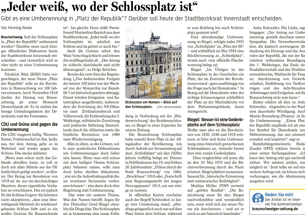 "Jeder weiß, wo der Schlossplatz ist"