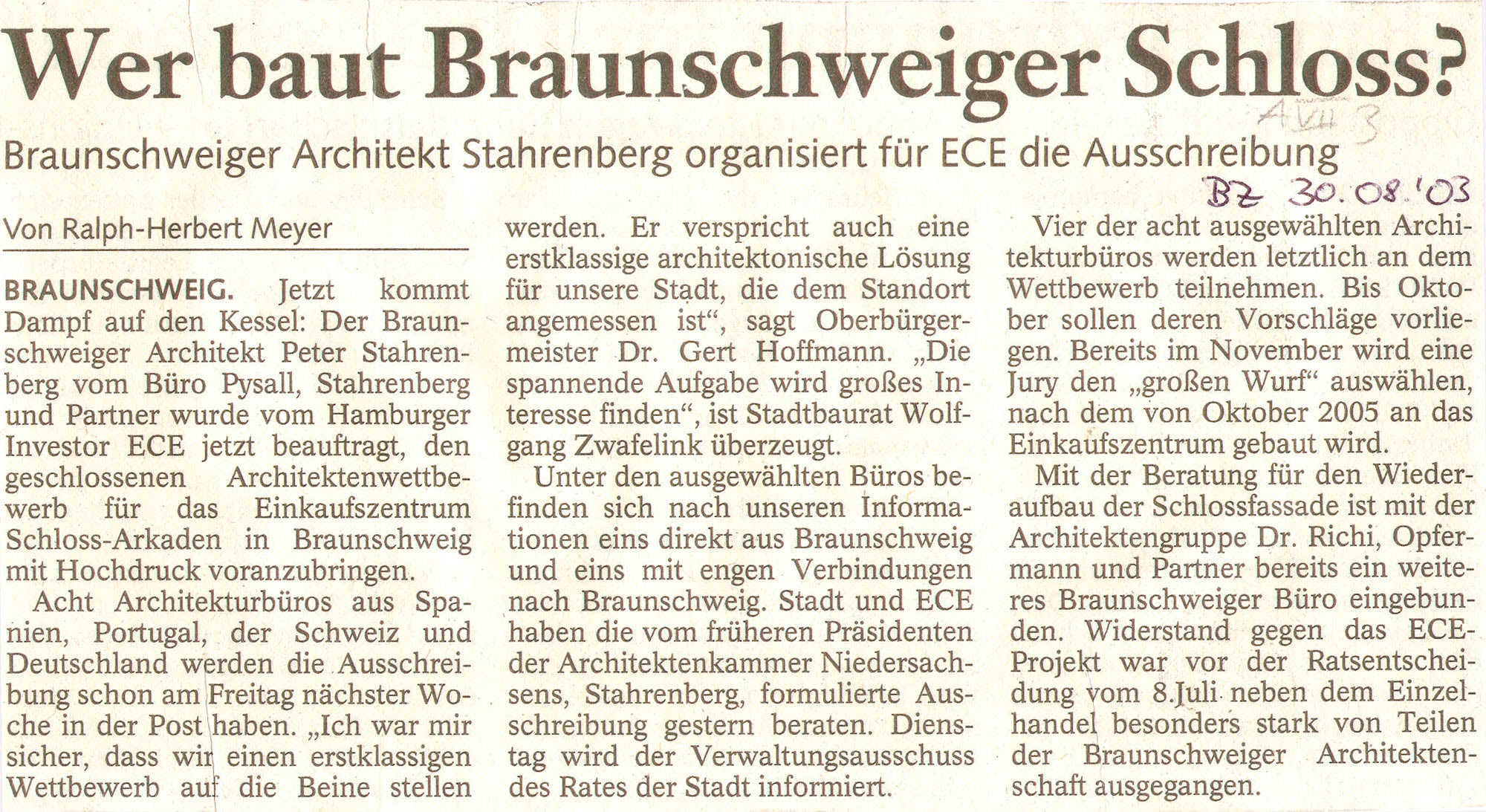 Wer baut Braunschweiger Schloss Redaktioneller Beitrag vom 30. Aug. 2003 Originaldatei herunterladen …
