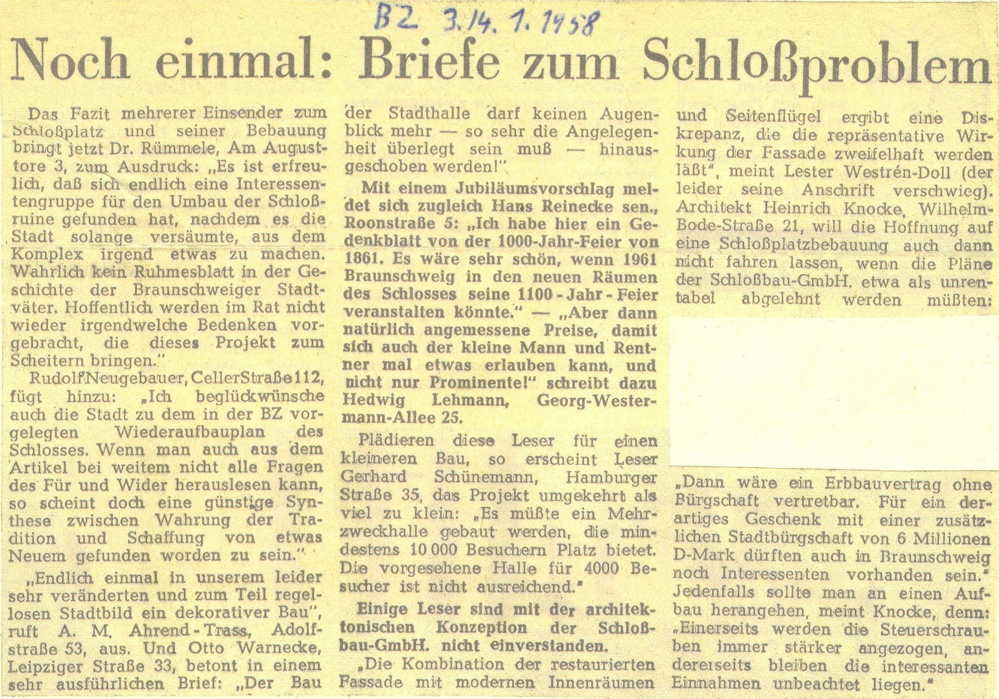 Noch einmal: Briefe zum Schlossproblem Redaktioneller Beitrag vom 03. Jan. 1958 Originaldatei herunterladen …
