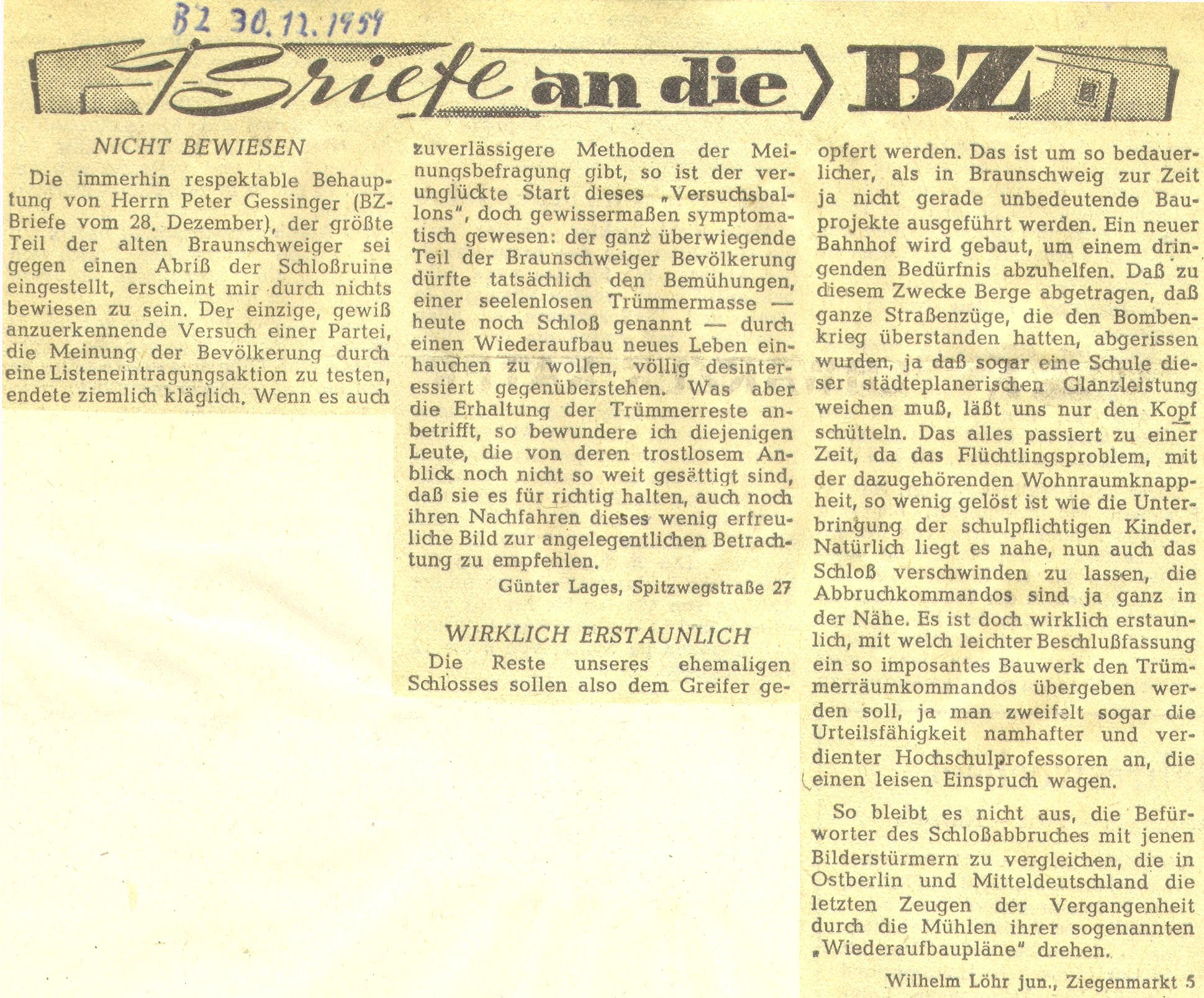 Briefe an die BZ
