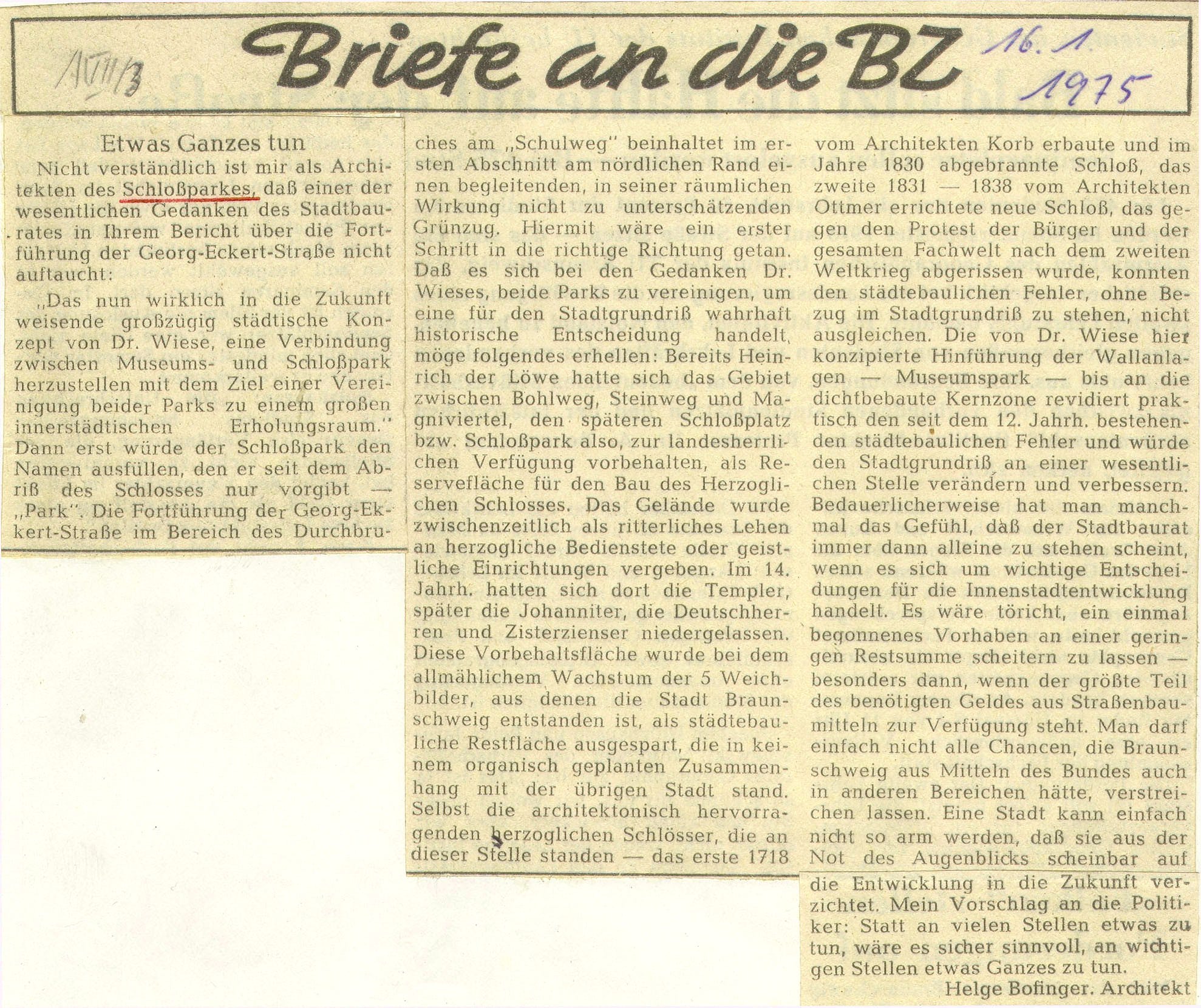 Brief vom 16. Jan. 1975
