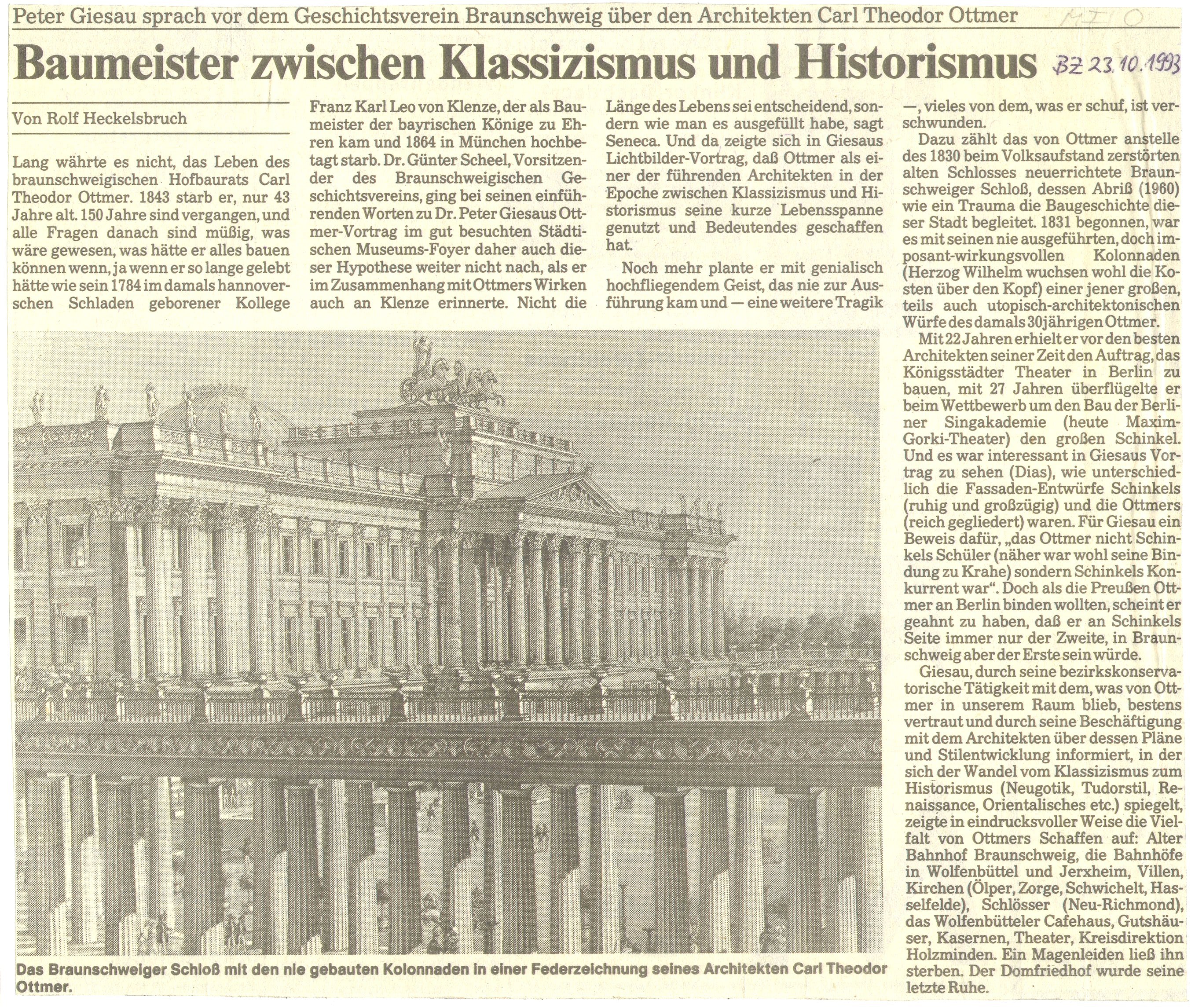 Baumeister zwischen Klassizismus und Historismus Redaktioneller Beitrag vom 23. Okt. 1993 Originaldatei herunterladen …