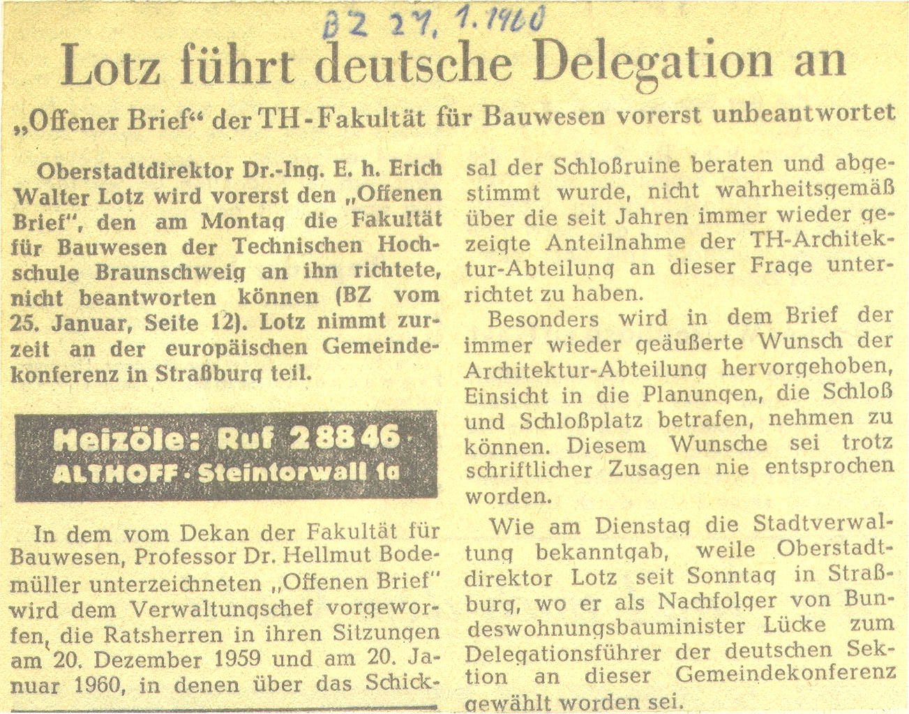 Lotz führt deutsche Delegation an Redaktioneller Beitrag vom 27. Jan. 1960 Originaldatei herunterladen …