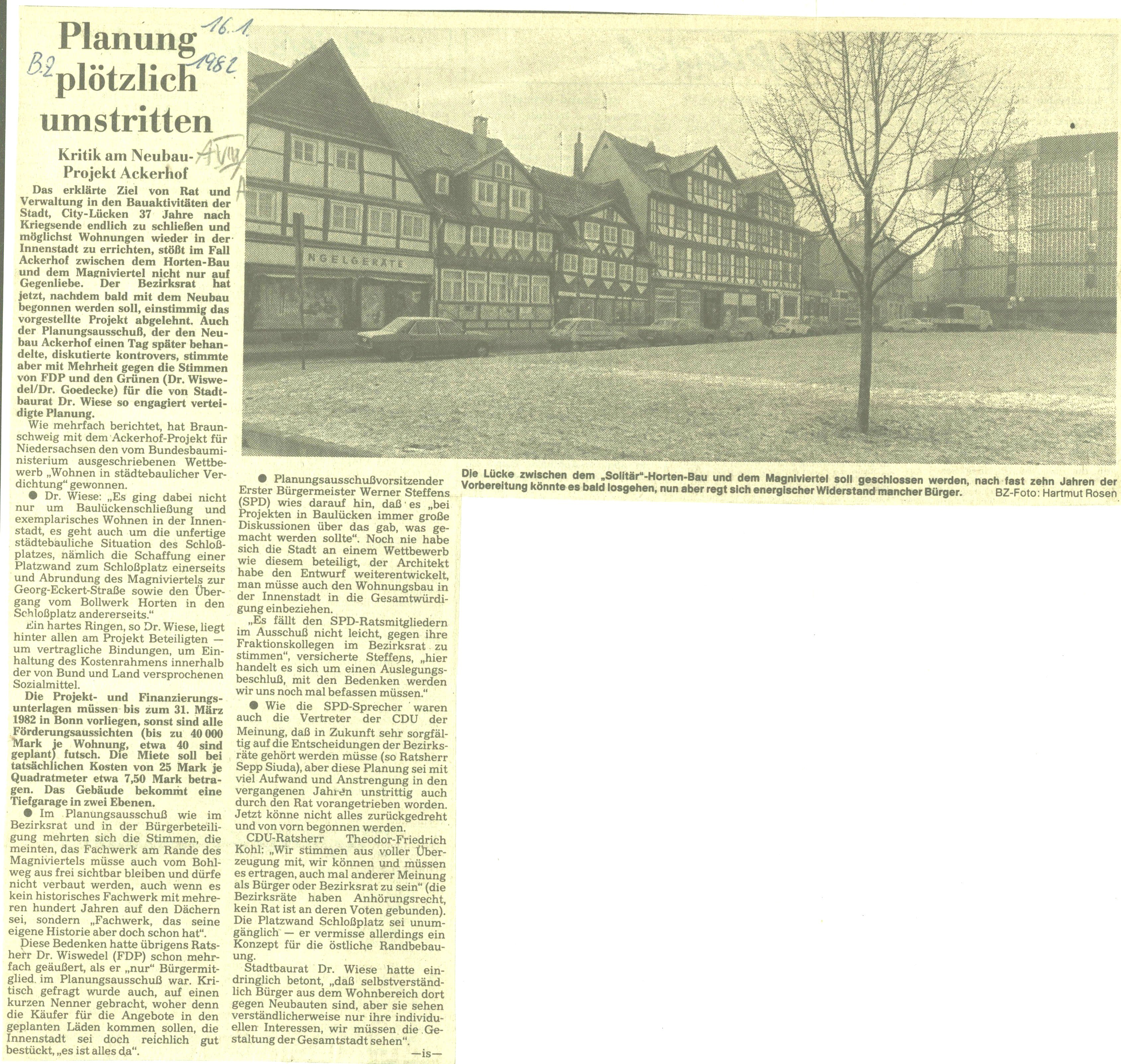 Redaktioneller Beitrag vom 16. Jan. 1982