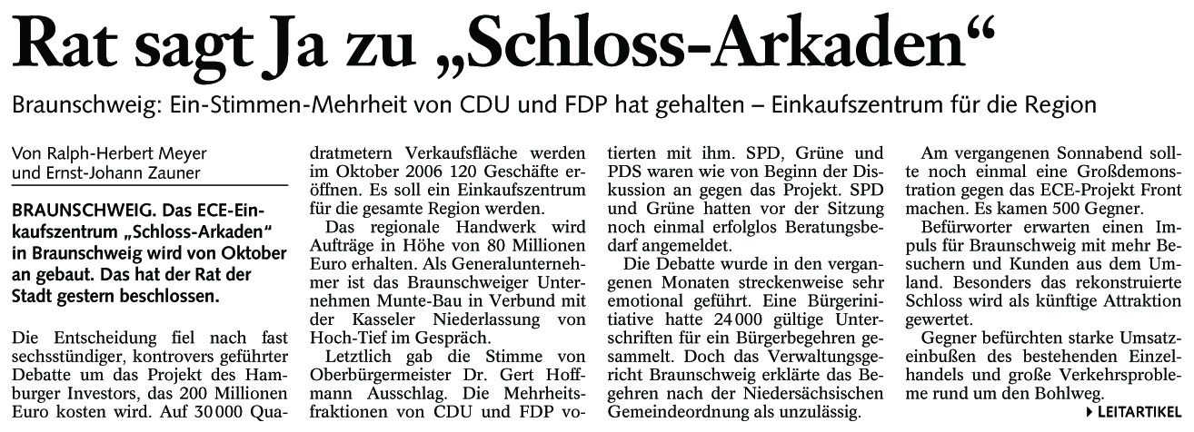 Rat sagt Ja zu „Schloss-Arkaden“ Redaktioneller Beitrag vom 06. Juli 2004 Originaldatei herunterladen …