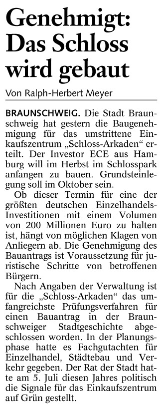 Genehmigt: Das Schloss wird gebaut Redaktioneller Beitrag vom 02. Sept. 2004 Originaldatei herunterladen …
