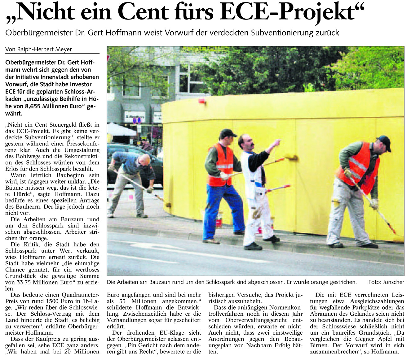 „Nicht ein Cent fürs ECE-Projekt“ Redaktioneller Beitrag vom 29. Apr. 2005 Originaldatei herunterladen …