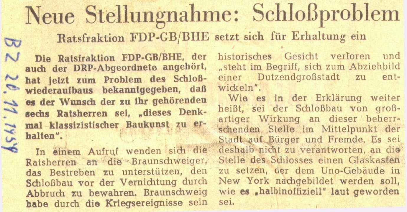 Neue Stellungnahme: Schlossproblem Redaktioneller Beitrag vom 20. Nov. 1959 Originaldatei herunterladen …