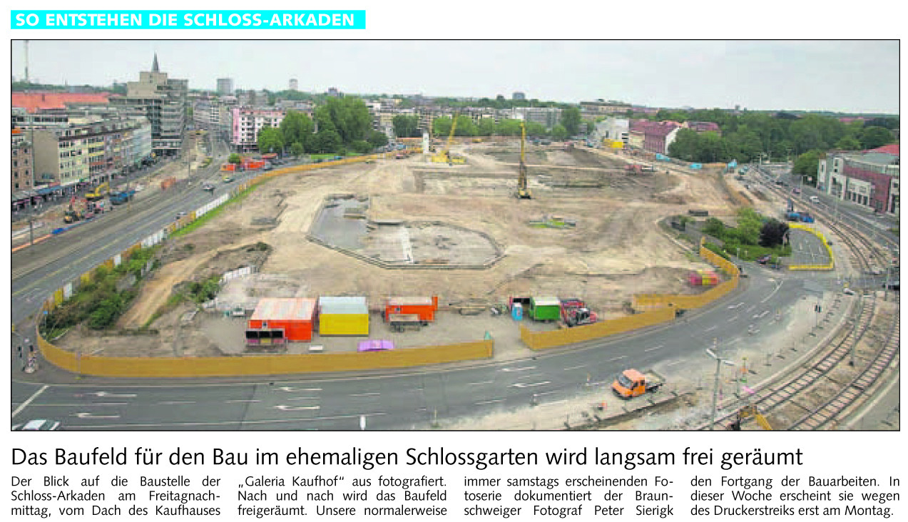 Das Baufeld für den Bau im ehemaligen Schlossgarten wird langsam frei geräumt Redaktioneller Beitrag vom 13. Juni 2005 Originaldatei herunterladen …
