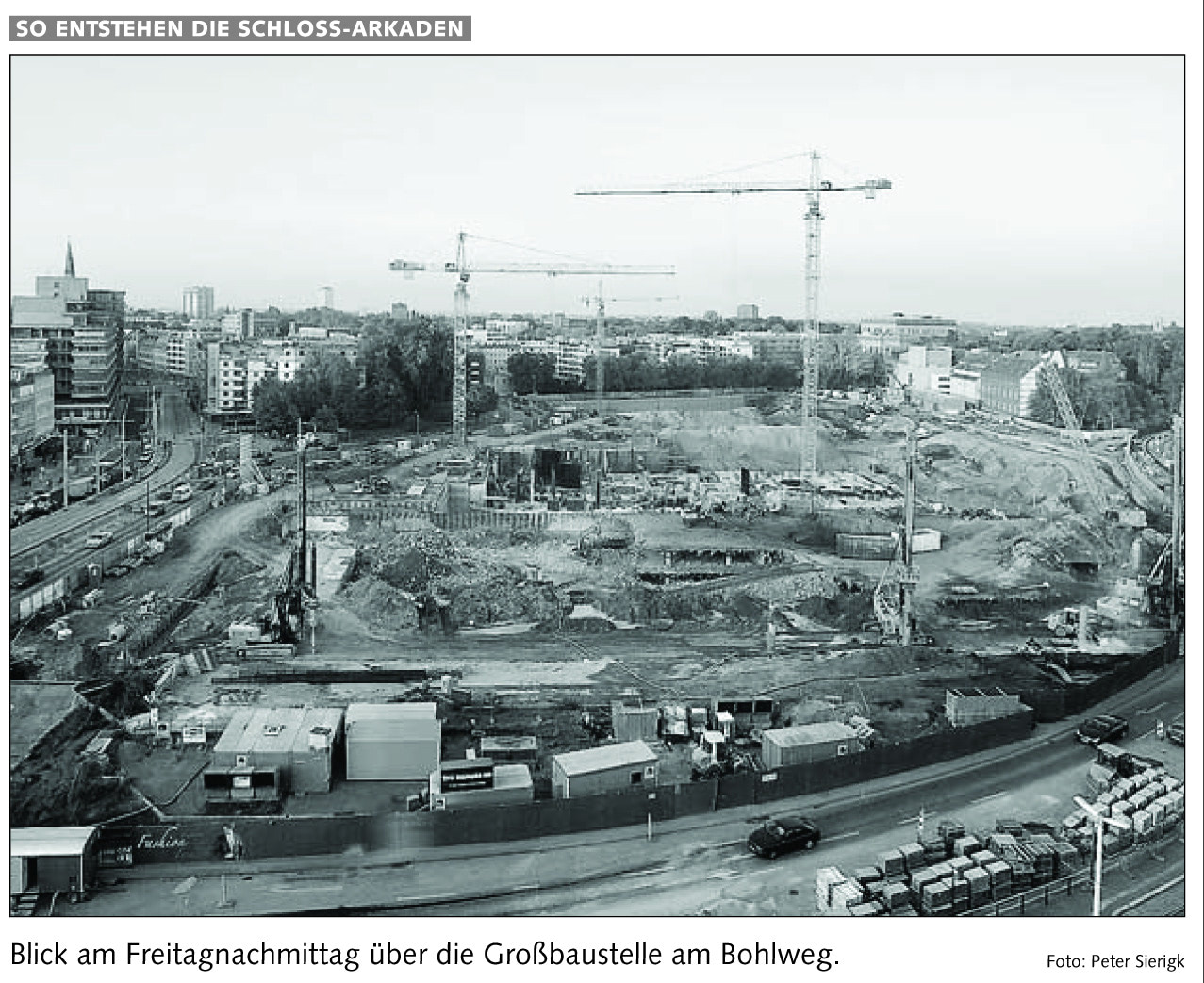 Blick am Freitagnachmittag über die Großbaustelle am Bohlweg Redaktioneller Beitrag vom 15. Okt. 2005 Originaldatei herunterladen …