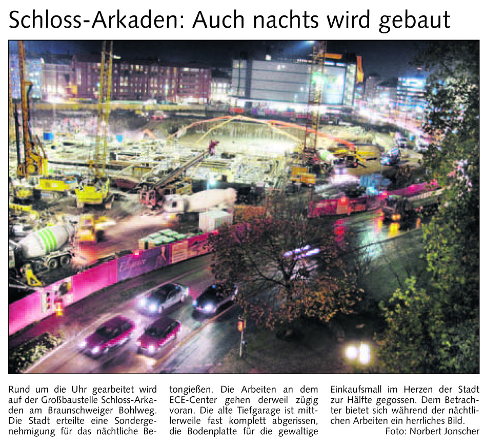 Schloss-Arkaden : Auch nachts wird gebaut Redaktioneller Beitrag vom 10. Nov. 2005 Originaldatei herunterladen …