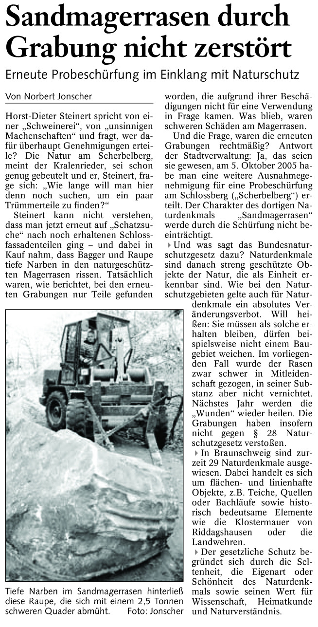 Sandmagerrasen durch Grabung nicht zerstört Redaktioneller Beitrag vom 21. Nov. 2005 Originaldatei herunterladen …