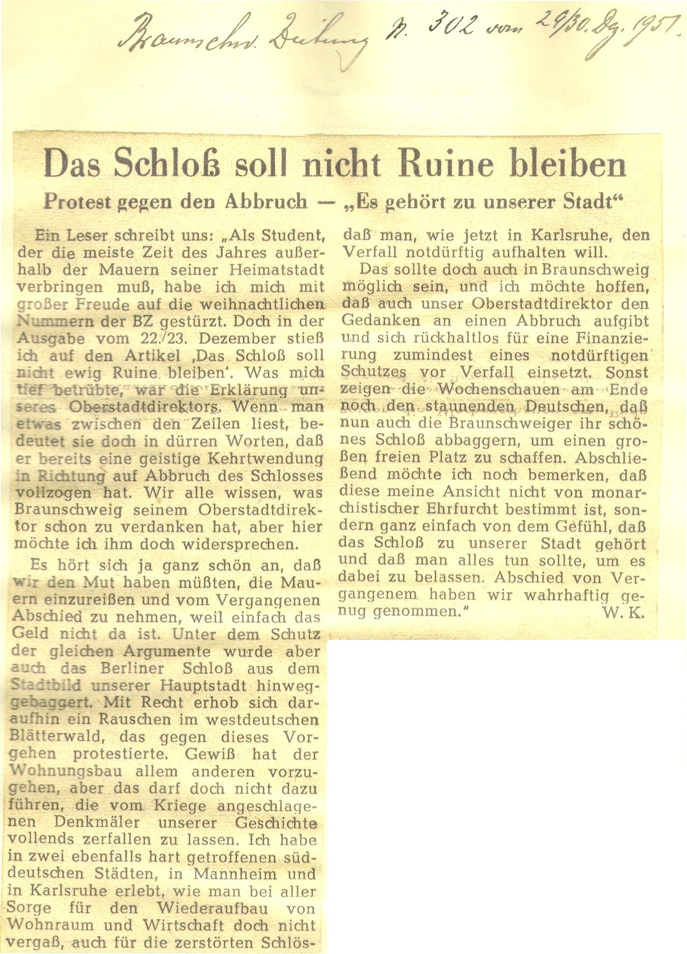 Das Schloß soll nicht Ruine bleiben