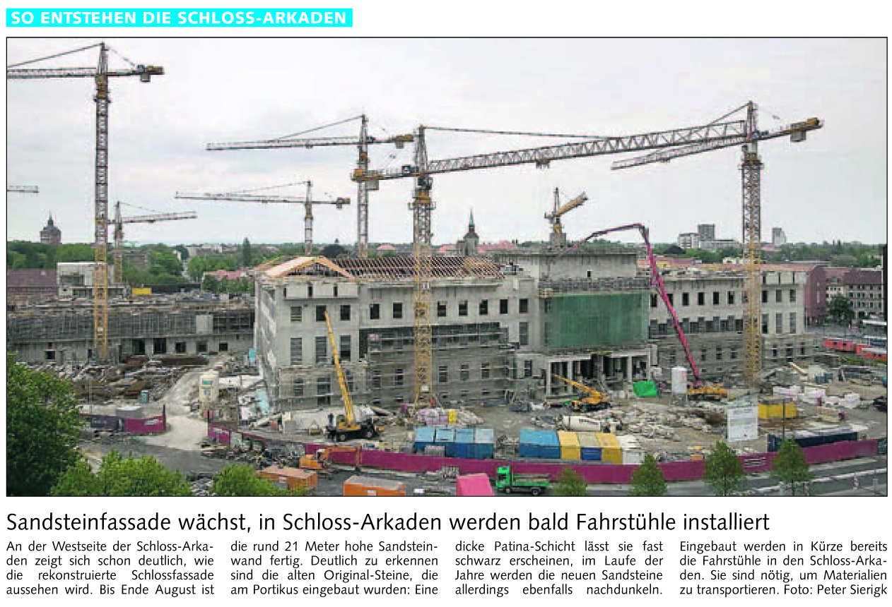 Sandsteinfassade wächst, in Schloss-Arkaden werden bald Fahrstühle installiert Redaktioneller Beitrag vom 27. Mai 2006 Originaldatei herunterladen …