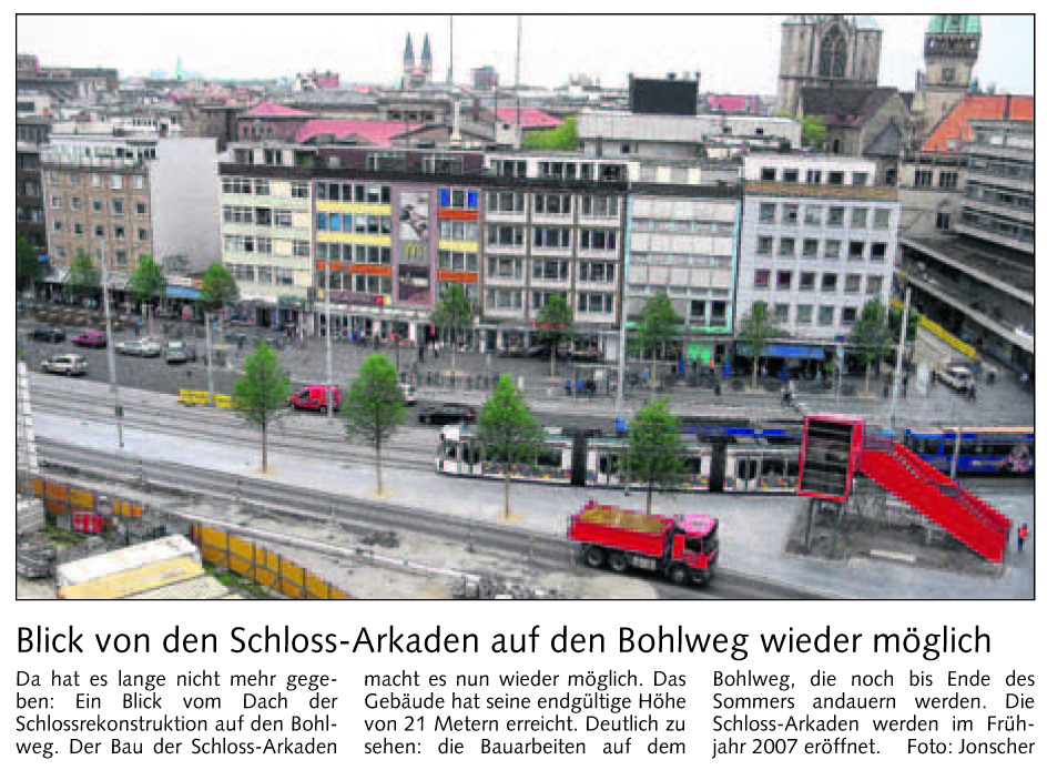 Blick von den Schloss-Arkaden auf den Bohlweg wieder möglich Redaktioneller Beitrag vom 09. Juni 2006 Originaldatei herunterladen …
