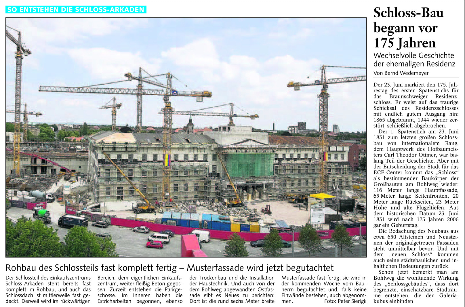Rohbau des Schlossteils komplett fertig – Musterfassade wird jetzt begutachtet / Schlossbau begann vor 175 Jahren Redaktioneller Beitrag vom 24. Juni 2006 Originaldatei herunterladen …