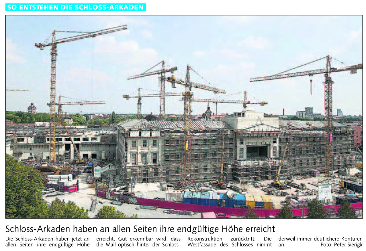 Schloss-Arkaden haben an allen Seiten ihre endgültige Höhe erreicht Redaktioneller Beitrag vom 22. Juli 2006 Originaldatei herunterladen …