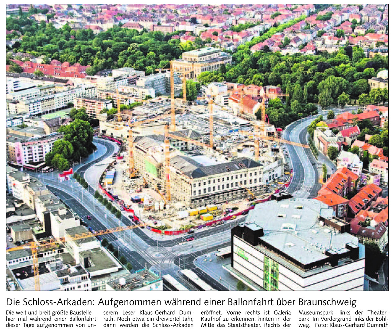 Die Schloss-Arkaden: Aufgenommen während einer Ballonfahrt über Braunschweig Redaktioneller Beitrag vom 25. Juli 2006 Originaldatei herunterladen …