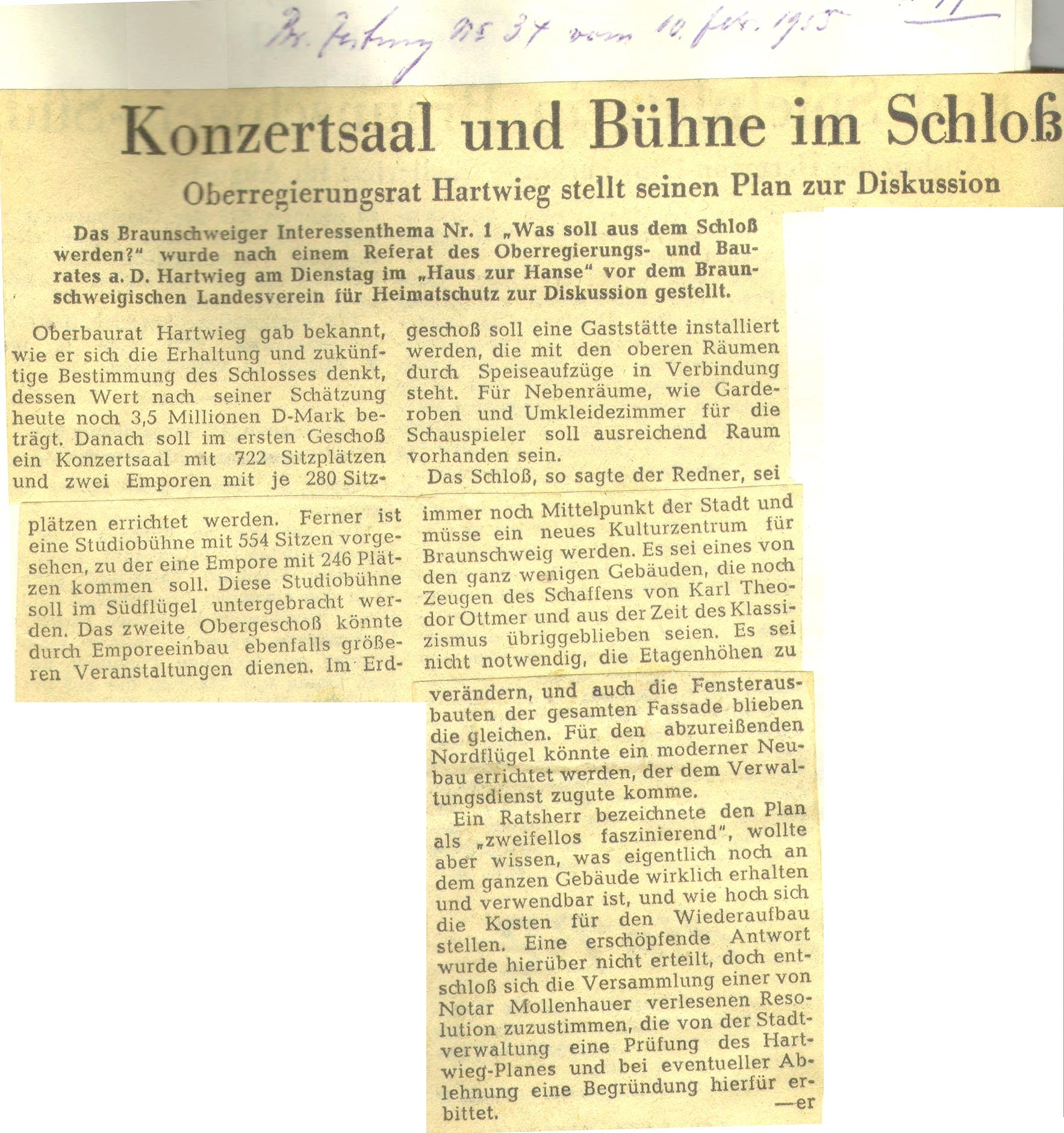 Konzertsaal und Bühne im Schloß Redaktioneller Beitrag vom 10. Feb. 1955 Originaldatei herunterladen …