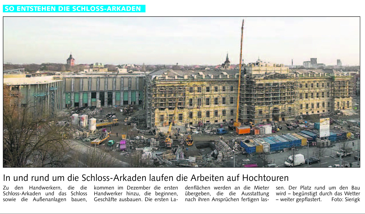 In und rund um die Schloss-Arkaden laufen die Arbeiten auf Hochtouren Redaktioneller Beitrag vom 02. Dez. 2006 Originaldatei herunterladen …