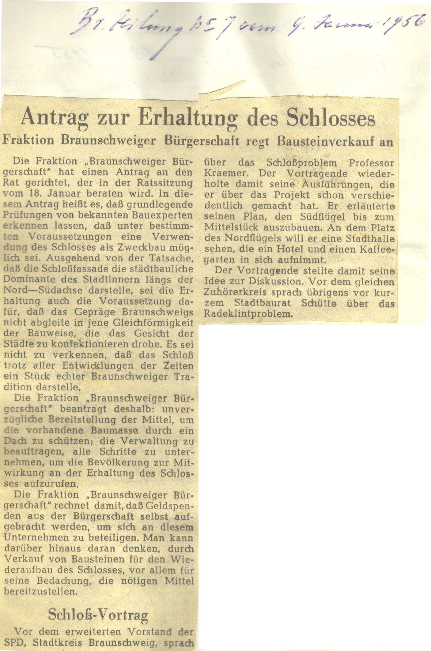 Antrag zur Erhaltung des Schlosses Redaktioneller Beitrag vom 09. Jan. 1956 Originaldatei herunterladen …