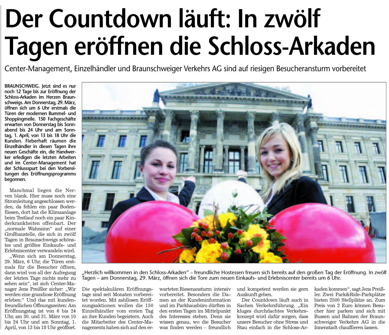Der Countdown läuft - In zwölf Tagen eröffnen die Schloss-Arkaden Redaktioneller Beitrag vom 17. März 2007 Originaldatei herunterladen …