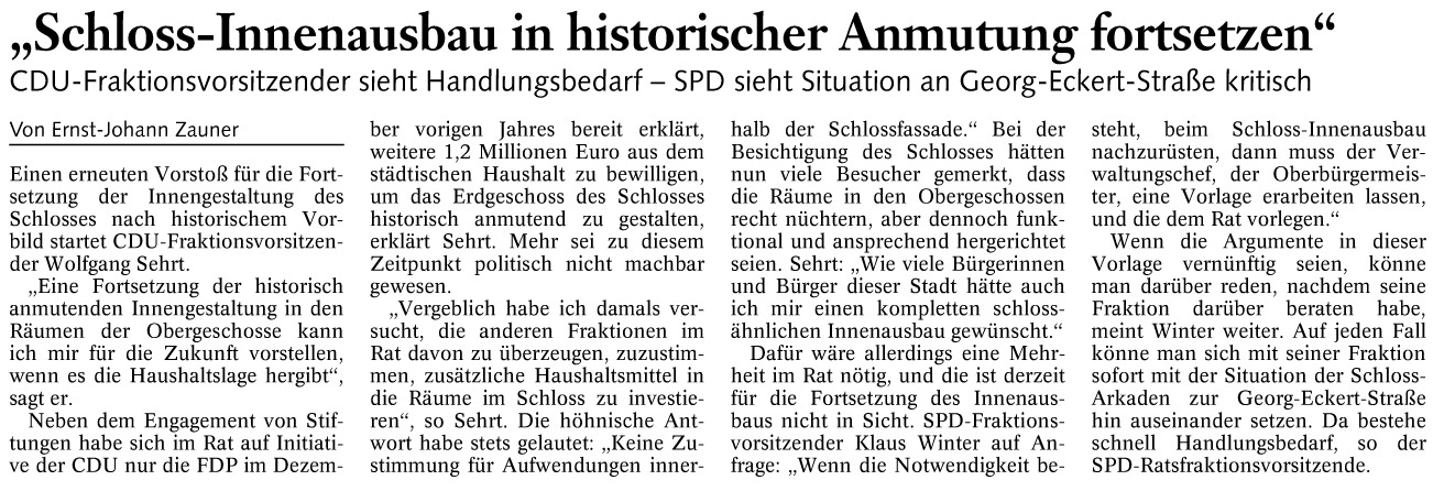 „Schloss-Innenausbau in historischer Anmutung fortsetzen" Redaktioneller Beitrag vom 14. Mai 2007 Originaldatei herunterladen …