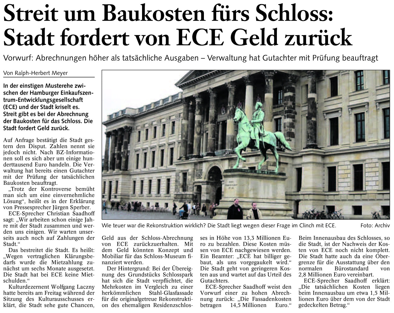 Streit um Baukosten fürs Schloss: Stadt fordert von ECE Geld zurück Redaktioneller Beitrag vom 22. Nov. 2007 Originaldatei herunterladen …