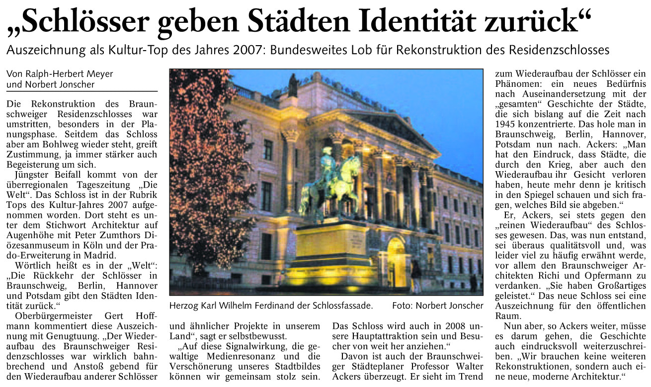 „Schlösser geben Städten Identität zurück“ Redaktioneller Beitrag vom 31. Dez. 2007 Originaldatei herunterladen …