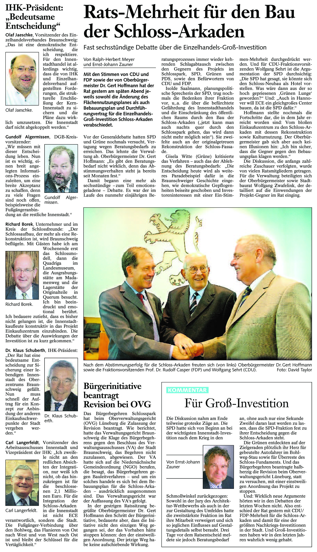 Rats-Mehrheit für den Bau der Schloss-Arkaden Redaktioneller Beitrag vom 06. Juli 2004 Originaldatei herunterladen …