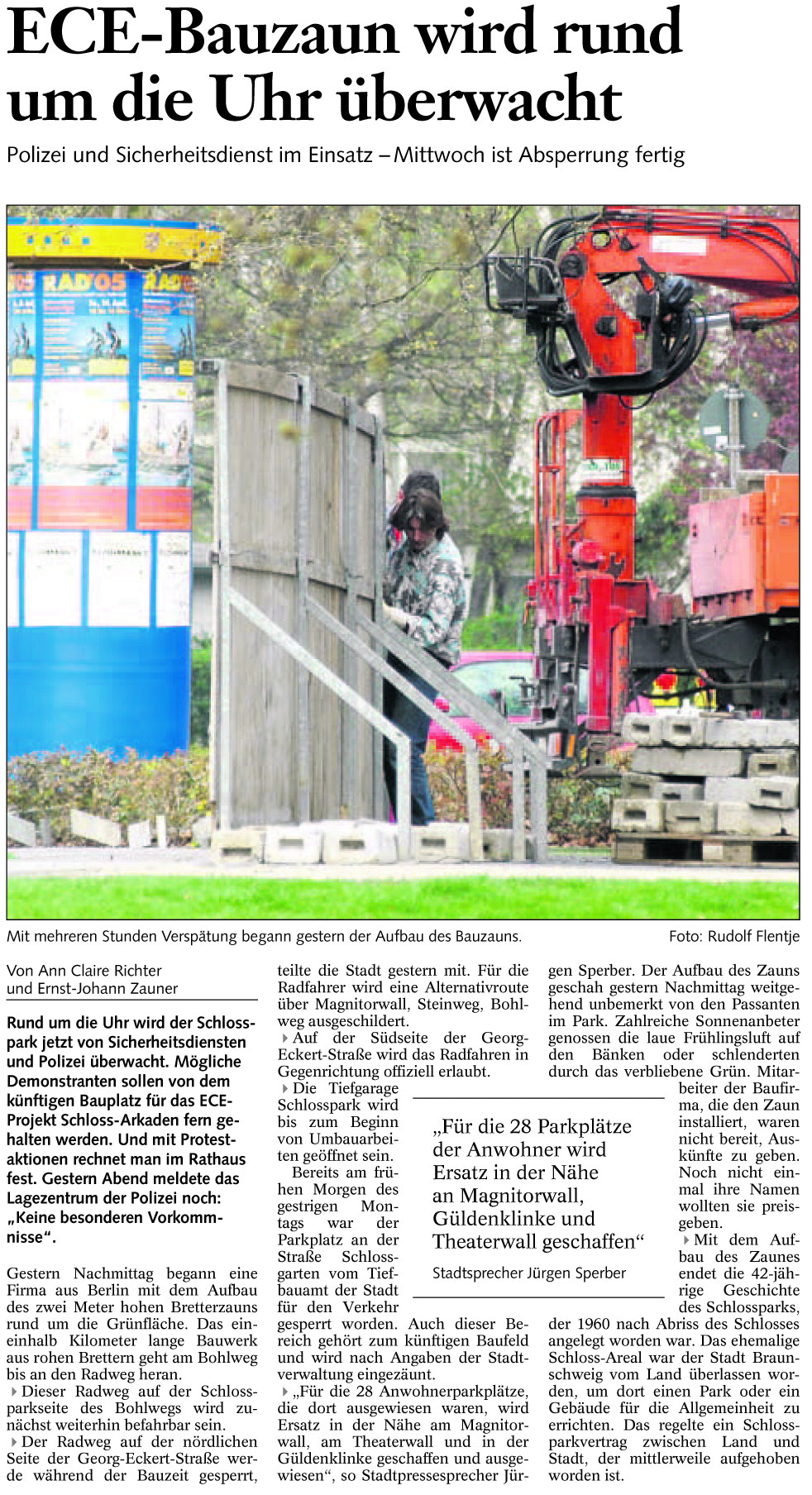ECE-Bauzaun wird rund um die Uhr überwacht Redaktioneller Beitrag vom 19. Apr. 2005 Originaldatei herunterladen …