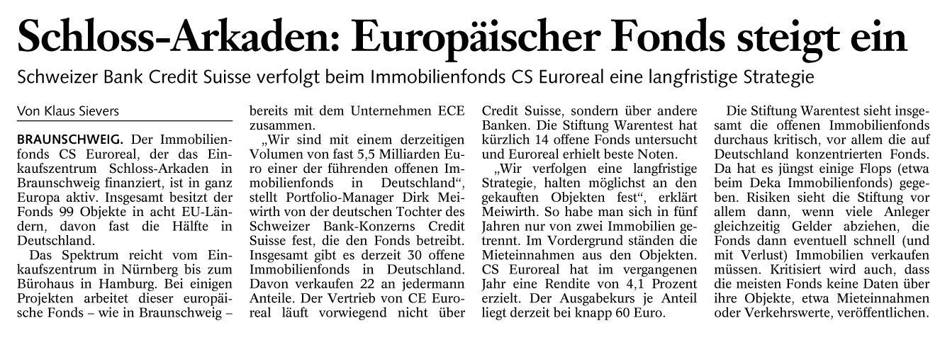 Schloss-Arkaden: Europäischer Fonds steigt ein Redaktioneller Beitrag vom 24. Mai 2005 Originaldatei herunterladen …