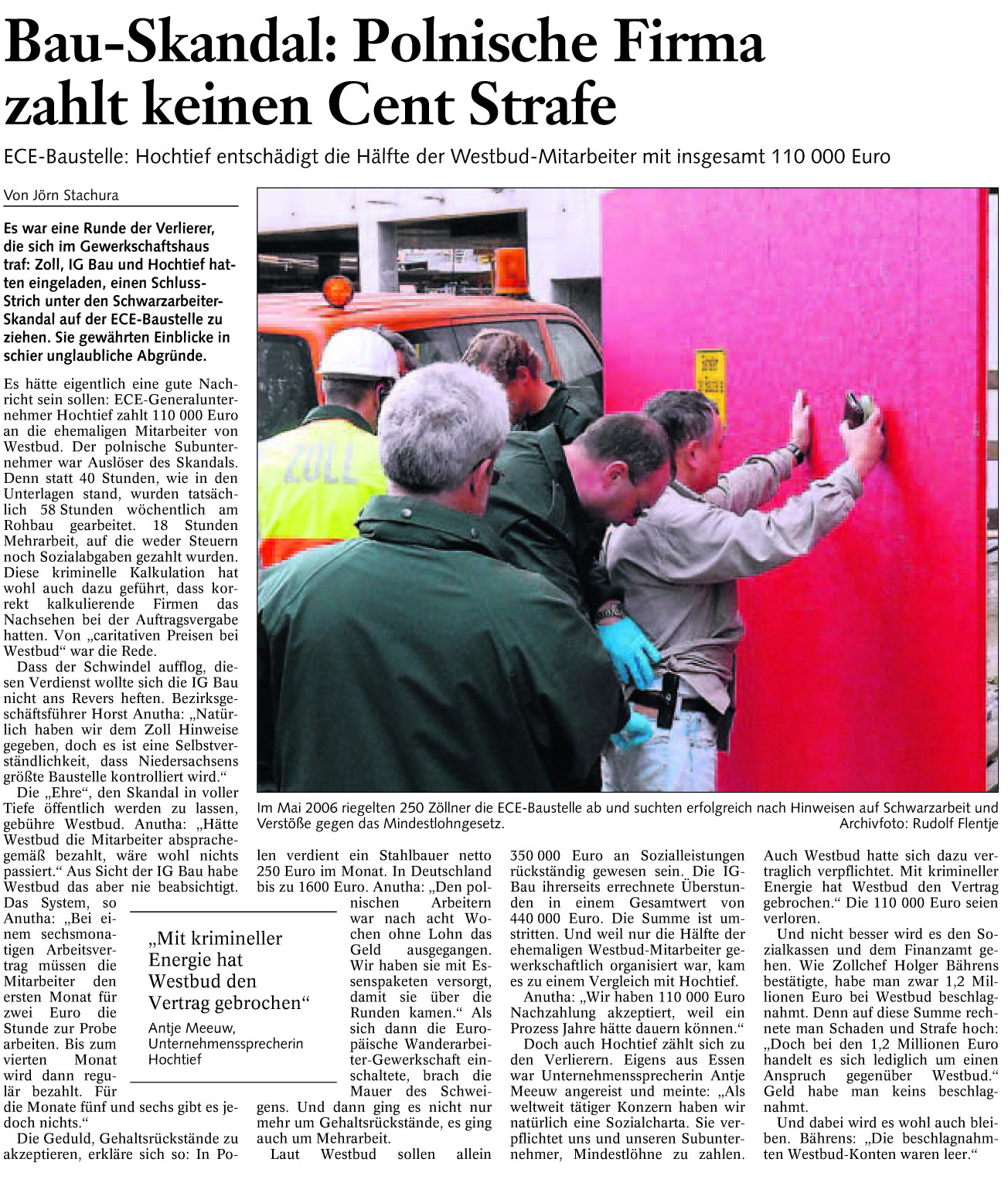 Bau-Skandal: Polnische Firma zahlt keinen Cent Strafe Redaktioneller Beitrag vom 09. Sept. 2006 Originaldatei herunterladen …