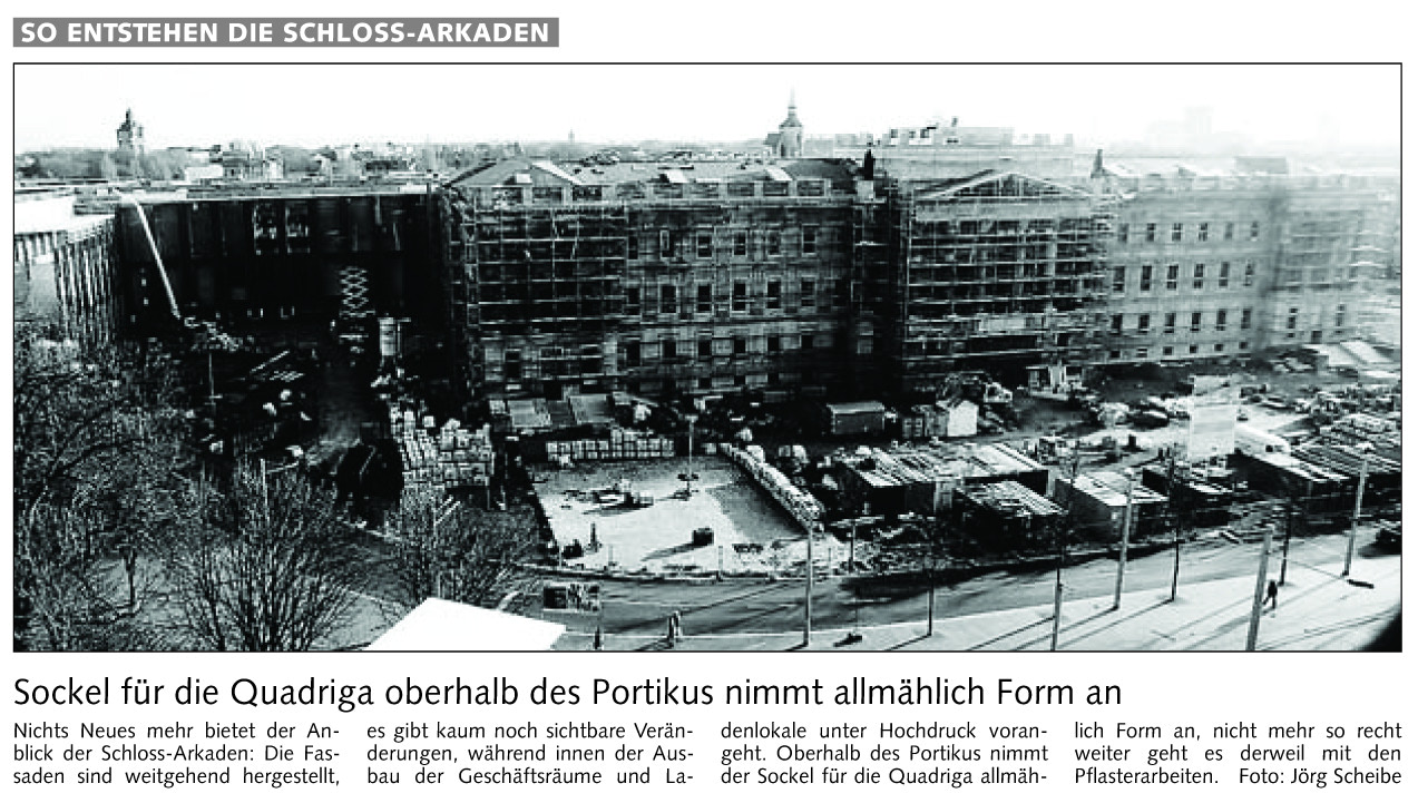 Sockel für die Quadriga oberhalb des Portikus nimmt allmählich Form an vom 30. Dez. 2006 Originaldatei herunterladen …
