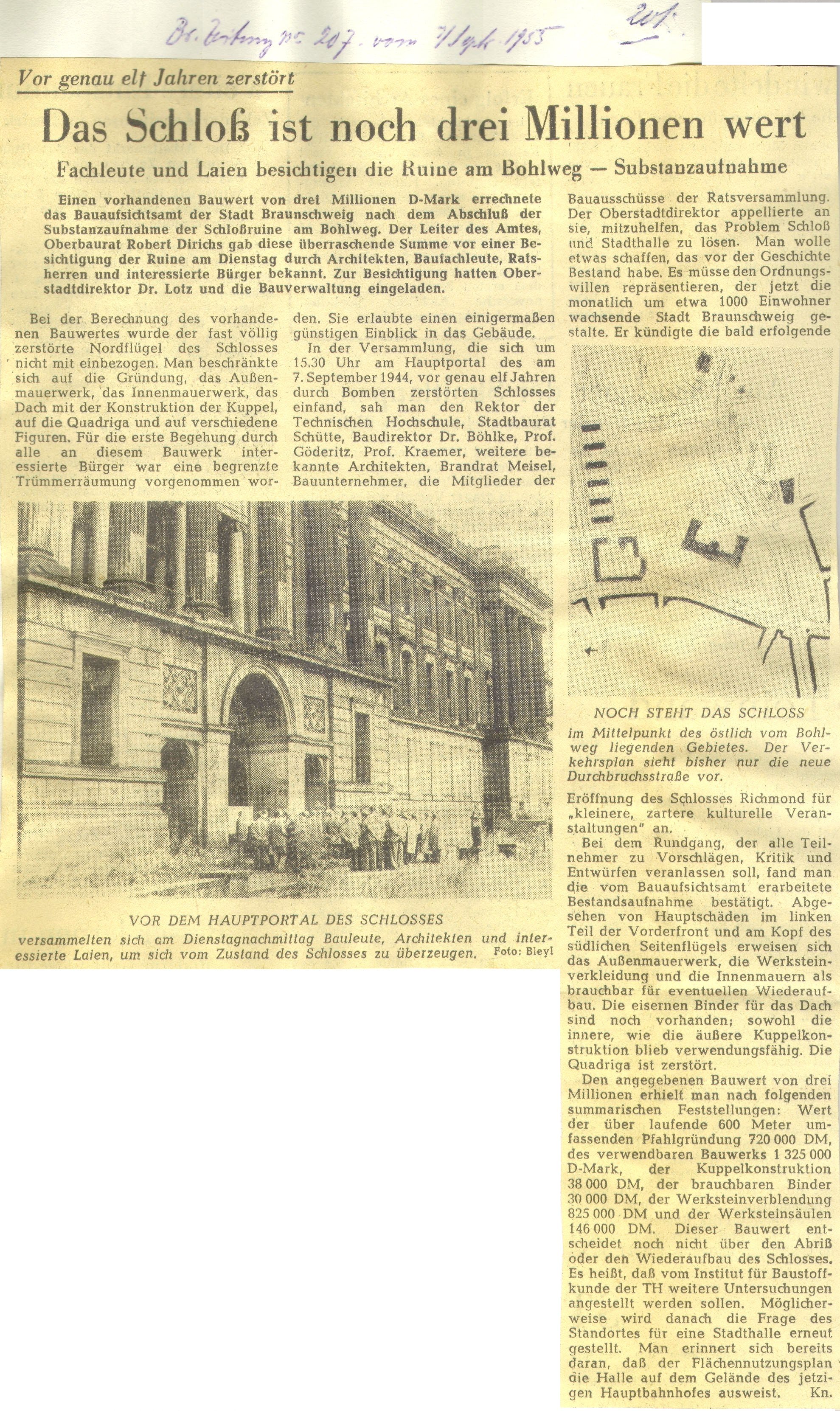 Das Schloß ist noch drei Millionen wert Redaktioneller Beitrag vom 07. Sept. 1955 Originaldatei herunterladen …