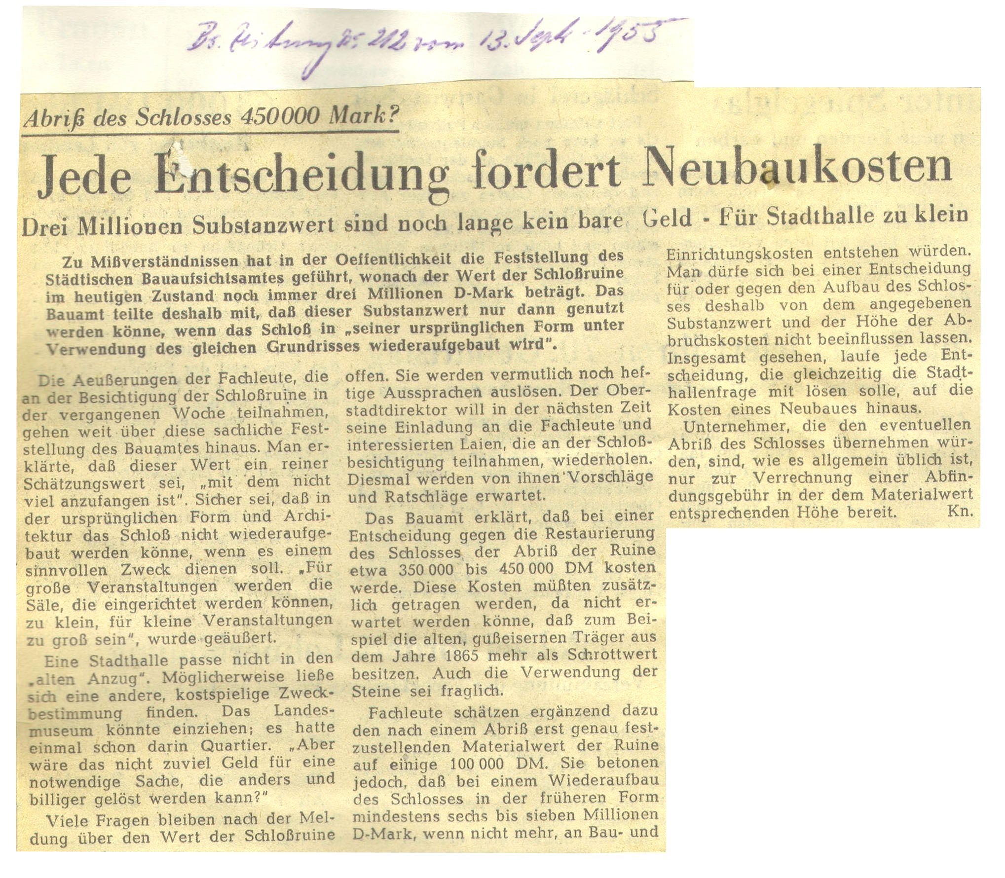 Jede Entscheidung fordert Neubaukosten Redaktioneller Beitrag vom 13. Sept. 1955 Originaldatei herunterladen …
