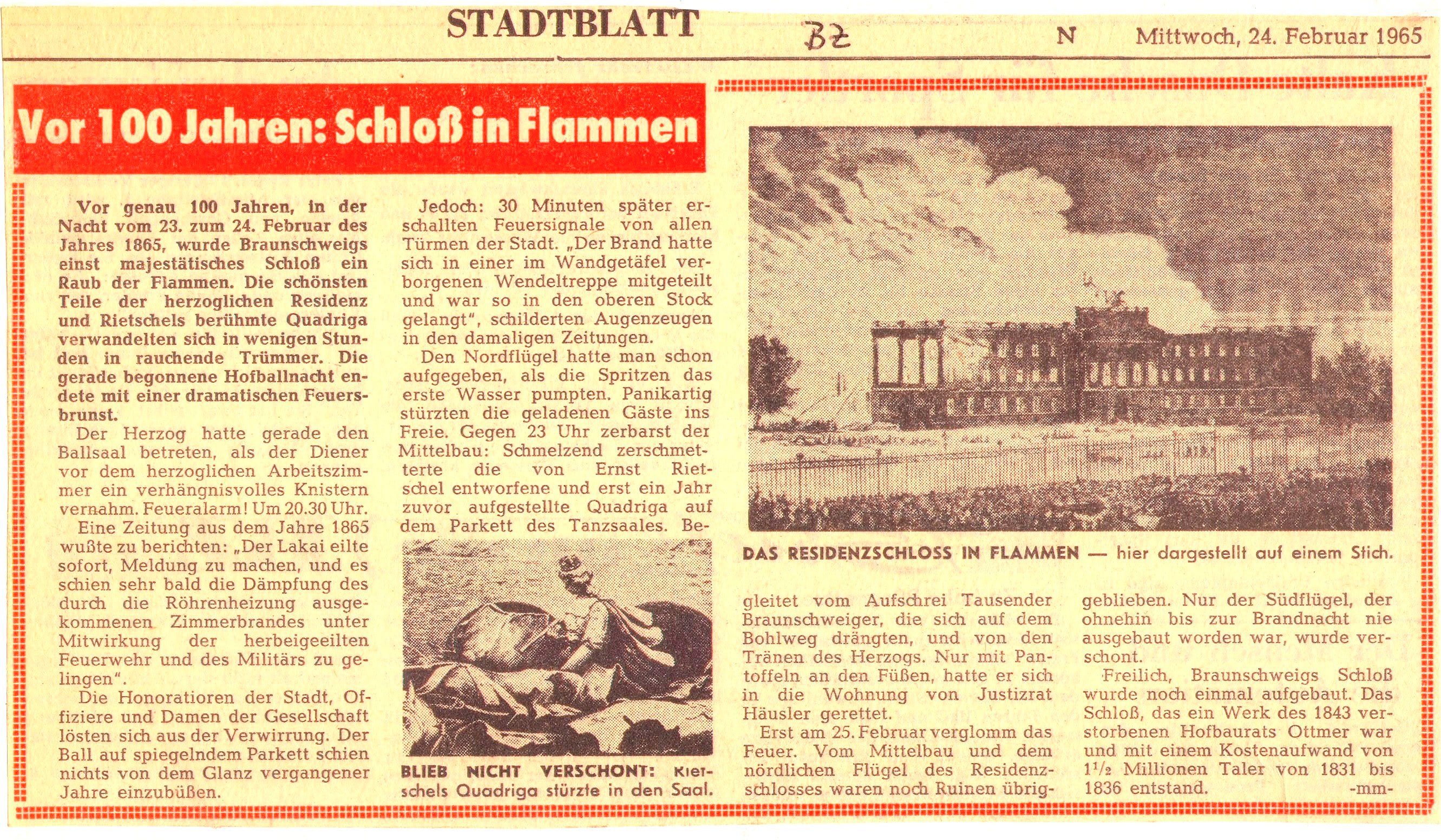 Vor 100 Jahren: Schloss in Flammen Redaktioneller Beitrag vom 24. Feb. 1965 Originaldatei herunterladen …